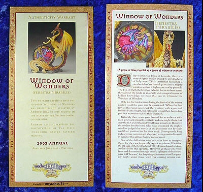 Below is the front and back view of the certificate that comes supplied with 'Window of Wonders'