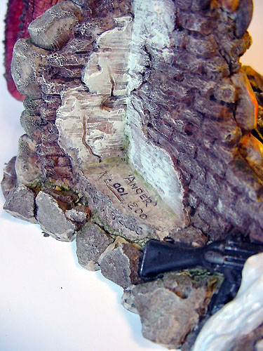 The photo below shows Andrews little joke with the bomb, this can't be seen on the finished piece because the fire covers it up