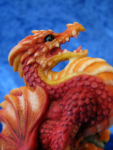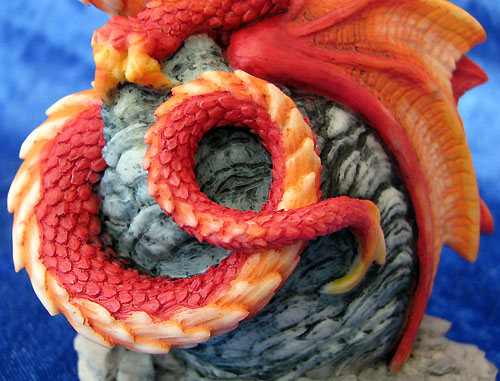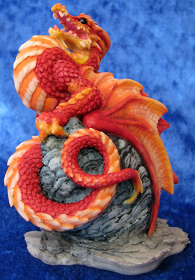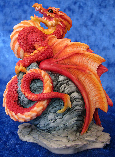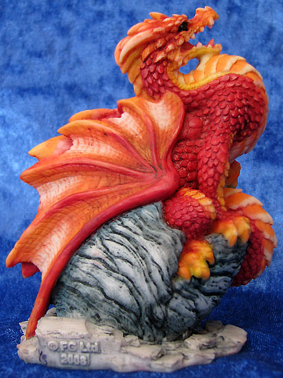 This piece was designed and sculpted by Andrew Bill and was introduced at the 2008 Dragonsite event held at the Flotel in Northwich on the 5th of October 2008 it is sculpted in the same scale as Andrews Bookwyrms. Furthermore, it is entirely produced and painted in the UK This Dragonsite event piece in red was strictly limited to the one day for people who made an effort to get to the dragonsite show, no more will be made available on ebay or in shops after the event in this colour. The only concession made for people who couldn't make it to the show was that people could order it online but only on the one day but it didn't come with the certificate that the piece had if you bought it from the event.. The piece will be available at future in store promotion events held during 2009 but each event will have it's own individual colour scheme |