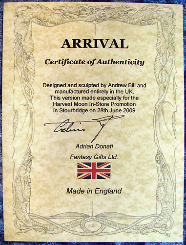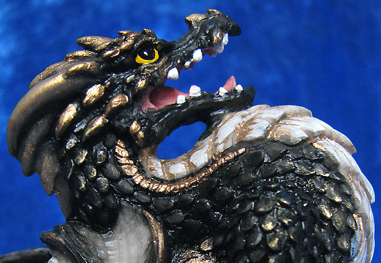 This piece was designed and sculpted by Andrew Bill and was first introduced at the 2008 Dragonsite event held at the Flotel in Northwich on the 5th of October 2008 in a red colourway. Furthermore, it is entirely produced and painted in the UK This Dragonsite event piece in black & gold was strictly limited to the one day for people who made an effort to get to the dragonsite shop event at Harvest Moon in Stourbridge, no more will be made available on ebay or in shops after the event in this colour (except any left over on the day will be sold by Harvest Moon). |
