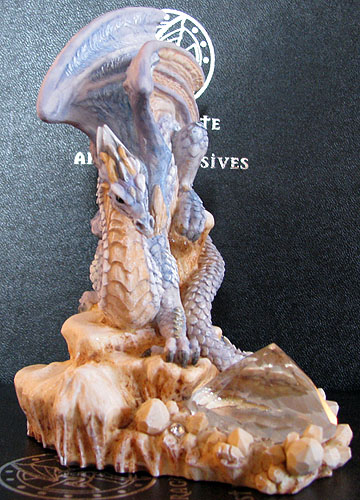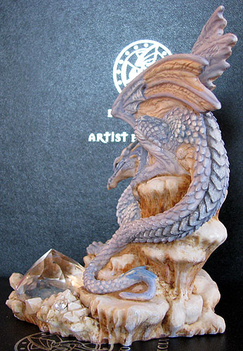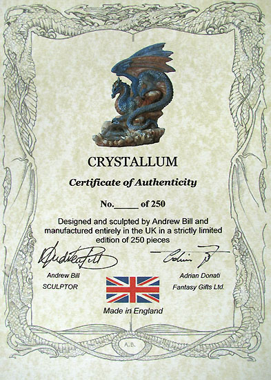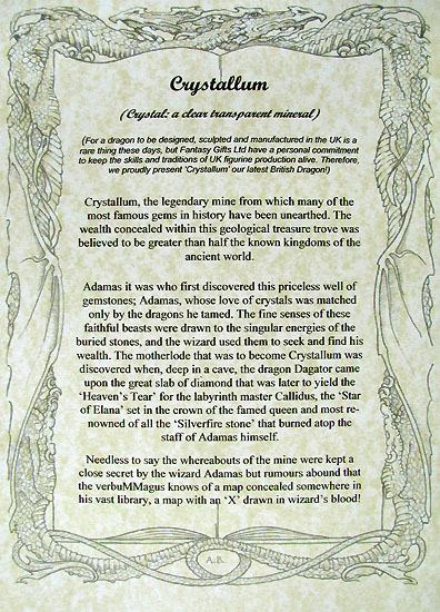 (For a dragon to be designed, sculpted and manufactured in the UK is a rare thing these days, but Fantasy Gifts Ltd have a personal commitment to keep the skills and traditions of UK figurine production alive. Therefore, we proudly present ‘Crystallum’ our latest British Dragon!)