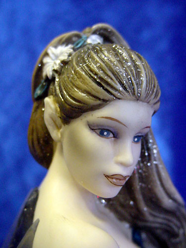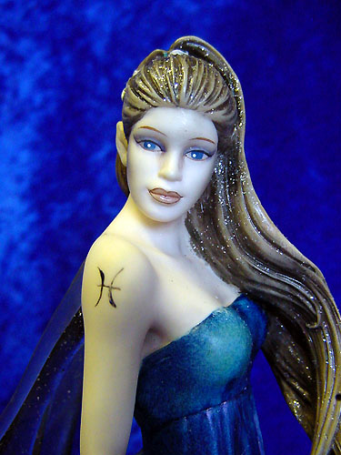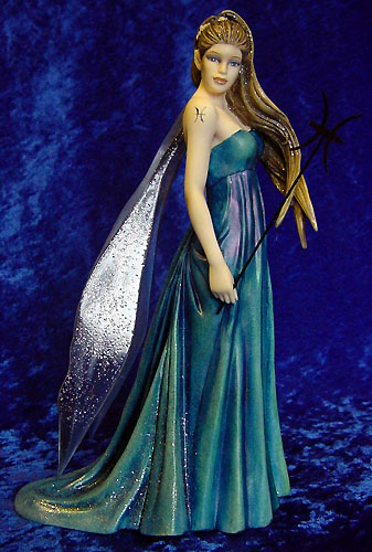 This is "Pisces" one of Jessica's "Zodiac" Faeries. Personally this is a case of glitter overkill! why we have to be subjected to so much glitter I don't know! I'm not a fan of this piece but it's not helped by the amount of shiny stuff *This piece was released in the US in June 2005 while Europe didn't get them until November 2005 when they had virtually sold out! hopefully this will not be allowed to become common practice because they should be available worldwide from the same date. There is also a version of this figure by the company 'Add an Accent' but the quality of the piece compared to this one is poor! check it out here |