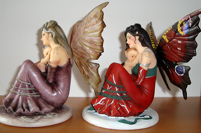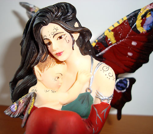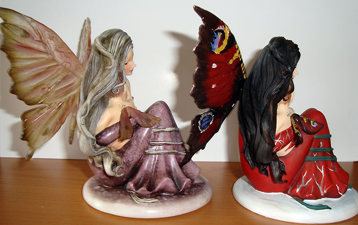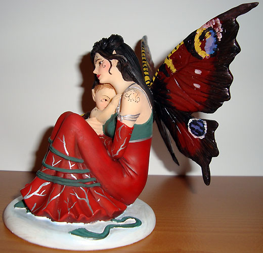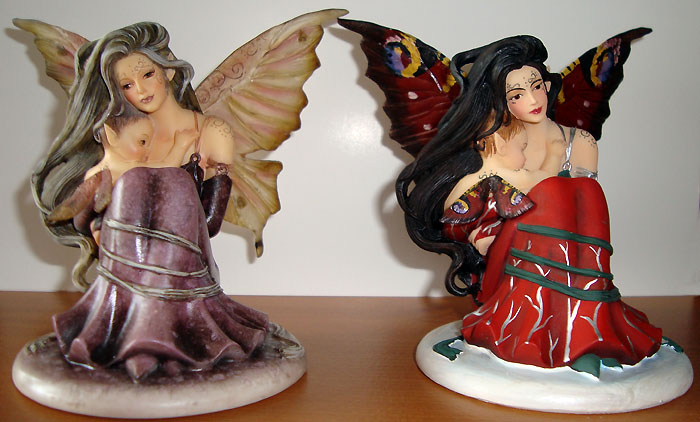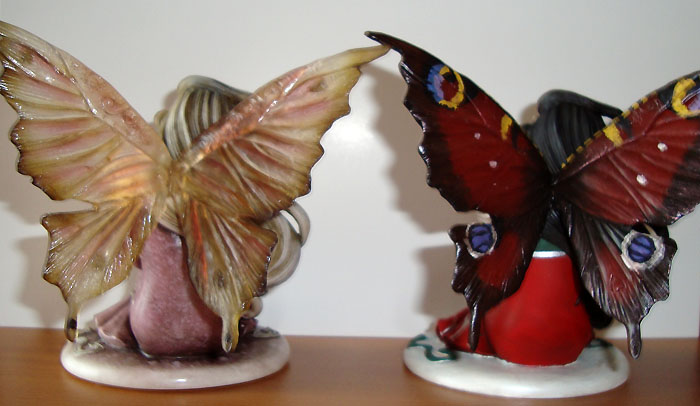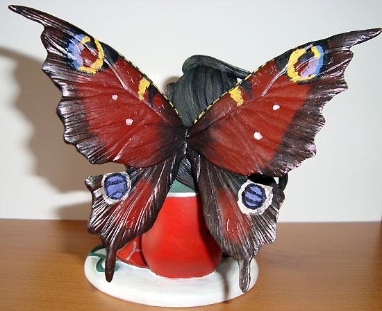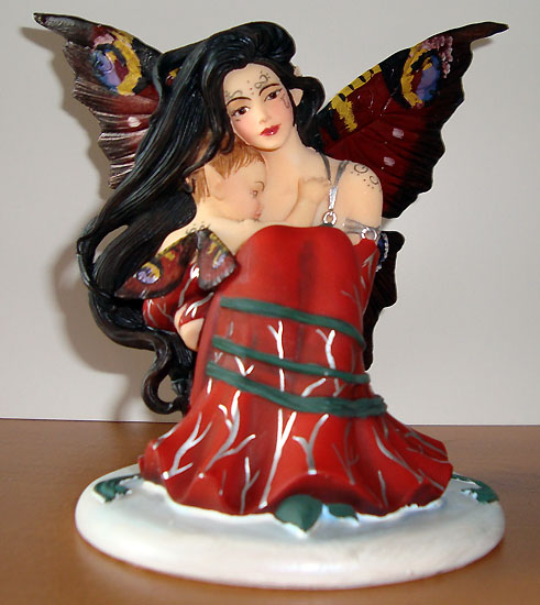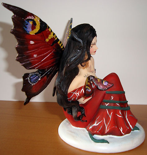 This version of Innocence was painted in red & green with wings painted like the wings of a Peacock Butterfly by Tina Sherratt for collector Fred Winkler (who took the photos). He requested that the colours resemble Jessica Galbreths art entitled 'Spirit of Yule'