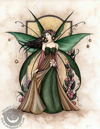 This version of Yule Faery was painted by Tina Sherratt for collector Fred Winkler (who took the photos). He requested that the colours resemble Jessica Galbreths art entitled 'Holiday Splendor'
