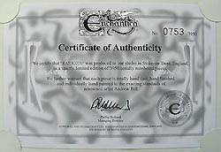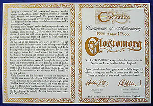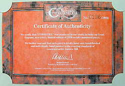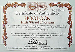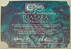 When the Dragongorge part of the Enchantica range was released they came with a new style of certificate, there were two types, a large version for the larger pieces and a small version for the smaller pieces but they were both in the same printed style, this was a parchment effect folding card with the Dragongorge logo printed on the front.