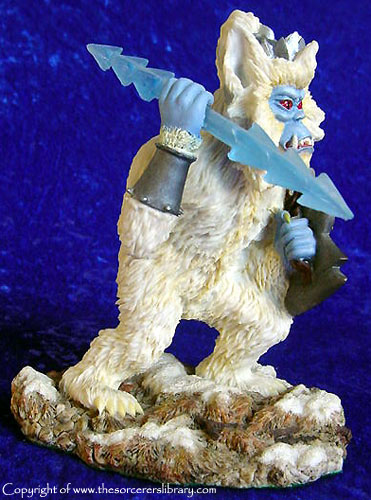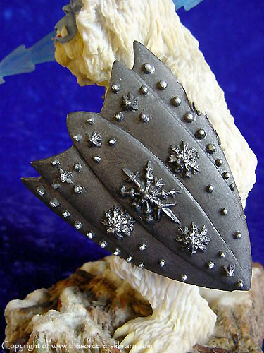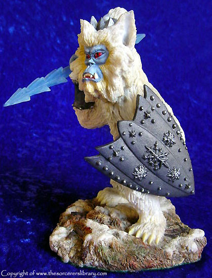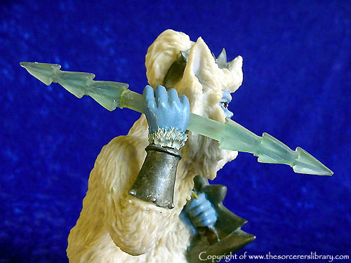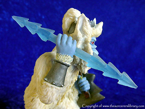 This was the collectors club redemption piece for 1992 - Early versions came with a greeny/blue ice spear but later versions came with a better ice blue spear. The reason for this was the first clear resins that were used had a yellow tone and when the blue dye was mixed it made the greeny blue tones of the early versions, but the clear resins that were used later were truly clear so that when the blue dye was added it was true blue. |