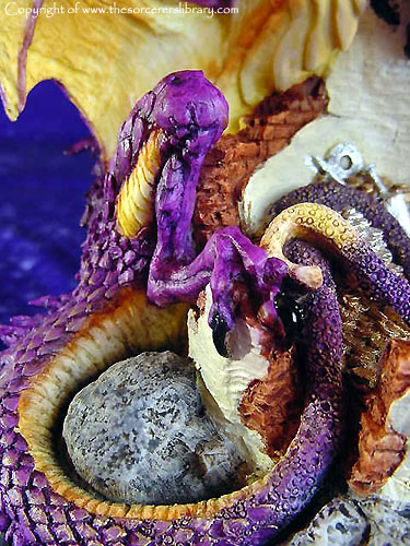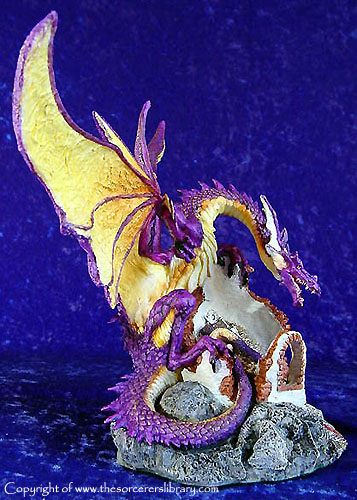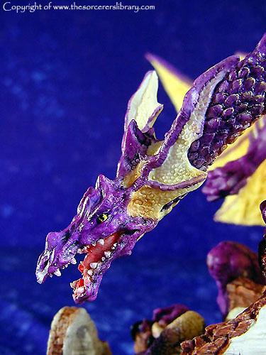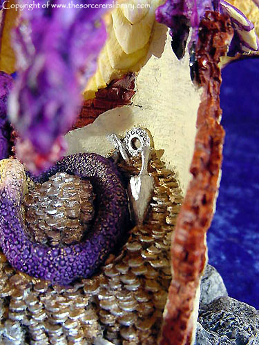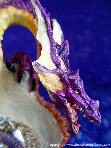 My dreams, however, were short lived. My satchel was only half full when my finely tuned senses feared the worst. Without warning, or sound, was a dragon coiled around the broken walls, of resplendent purples, staring right into my eyes. It’s warm breath and fearsome teeth were uncomfortably very close as I slowly emptied my bag back onto the pile. It’s eyes watched my every move. A trained thief knows his limits you know!, and I turned and ran for all my worth as the dragon, well, it sounded like laughter!!