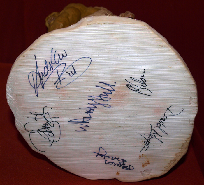 I can't guarantee that this piece actually is the 1996 auction piece but going on the number of signatures on the base it is quite likely (Andrew Bill, Andrew Hull, Rob Simpson, James Brierley, David Mayer & an unidentified signature)