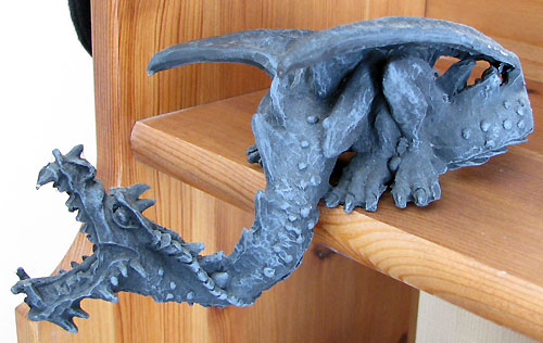 Hi, im Paul (Boz) to my friends. I first started collecting when the original Enchantica season dragons came out, little did I know how much effect this was going to have in my life. I tend to live my life in a fantasy world so I never really grew up, I still act the fool even now. When I met Lisa my third wife she shared my enthusiasm for dragons, she also liked fairies and so the four season dragons became what you see now. Most of the fairies (Jenny Oliver and Clarecraft) are at her home along with a few other items. I would like to say without Lisa I could not have made this collection Living room Upstairs Computer desk A few repaints and TSL pieces A selection of Genesis Creations, Pocket Dragons, Exodus, Little Gems and a few others They also extend out into the garden... Dragons have also been inked on his skin... You can also see photos of Paul really getting into the spirit of things at the 2000 & 2001 Enchantica Extravaganzas where he attended in full wizard costumes (Mezereon & Gembranosus) |