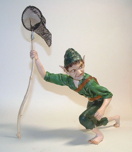 After Sue Camm's first experiment using sculpey she watched a doll making DVD by Wendy Froud and was inspired to have a go herself using some of the techniques shown on the DVD, this time using Fimo, the result was the Dream Catcher