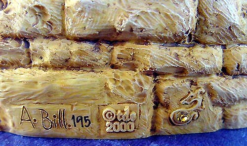 Below shows the Topaz gem stone that depicts the year the piece was sculpted which in this case was 2001