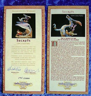 Below is the front and back view of the certificate that comes supplied with 'Secrets' it comes personally signed by Andrew Bill and Phillip Holland (not the usual printed signature) and is hand numbered