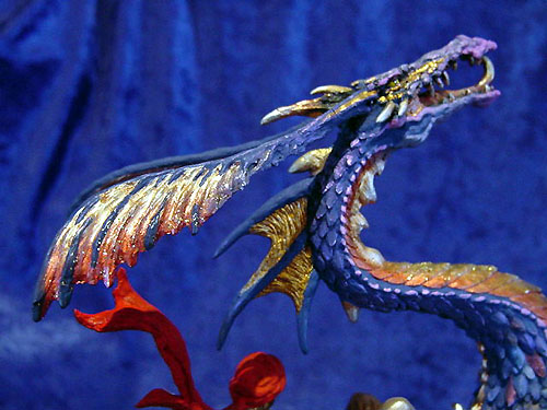 A forth paint trial shown below is again similar to the production version with just a few differences, it was painted by Caroline Briggs and Steve Vyse. this piece was sold in the 2002 Dragonsite show auction