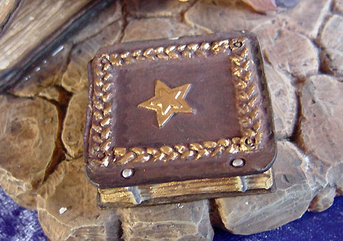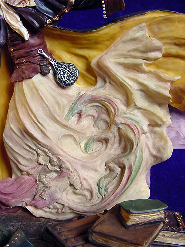 I love the expression on his face! you can also see that his big cloak collar looks like the pages from books, I just wish he had a pair of glasses
