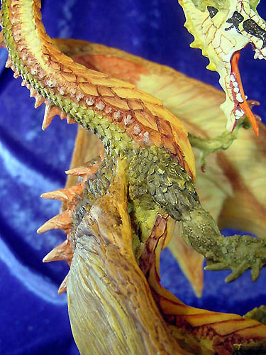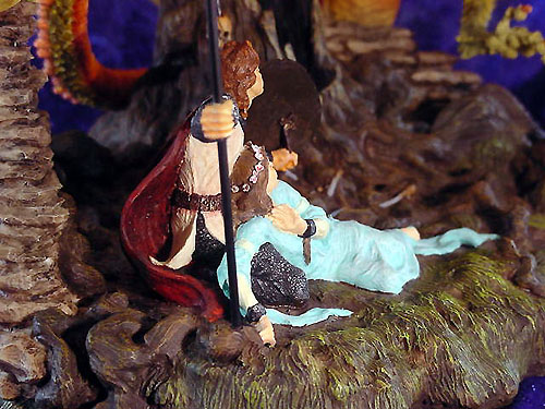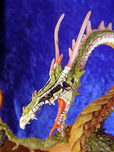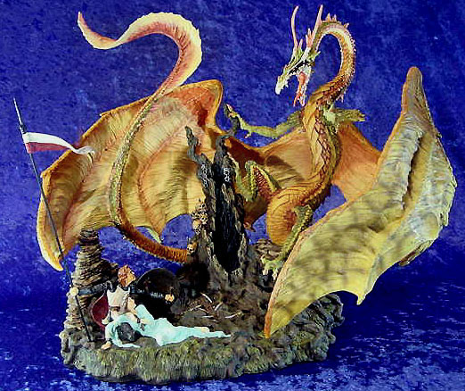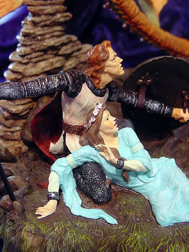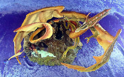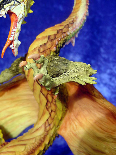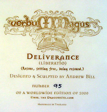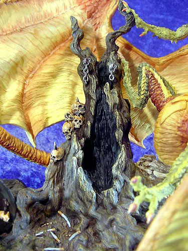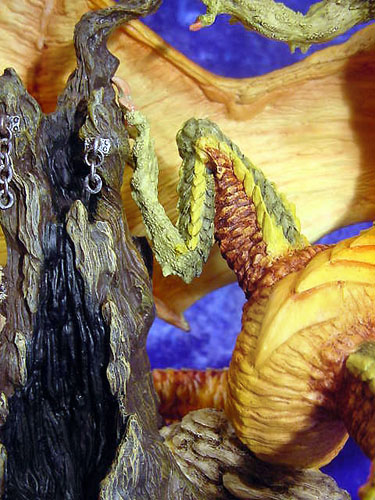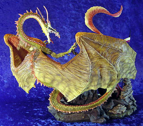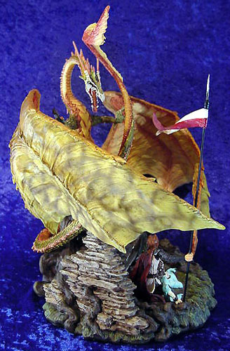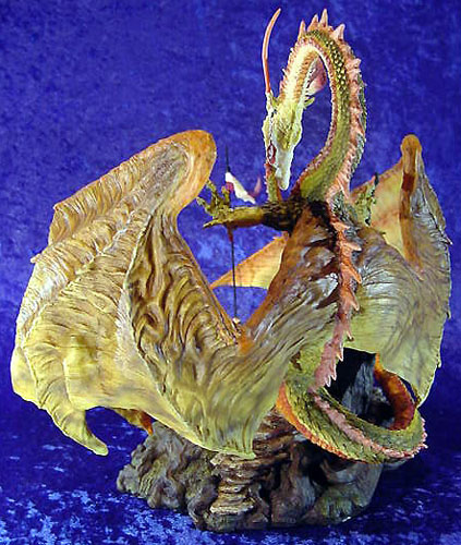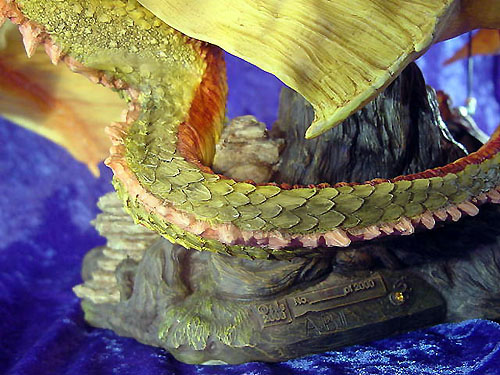 This along with Incantation was the first launch piece available from a special low key (but very well attended) promotional show at Moddershall Hall in Stoke on the 26th & 27th of May 2001 The Dragons name is 'Igniculus' as told in the short story about this piece (shown above) To see an Animated rotation of this piece Click Here or use the button at the bottom of this page |