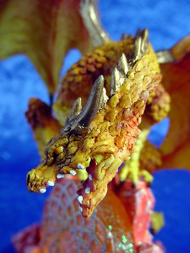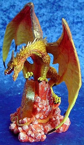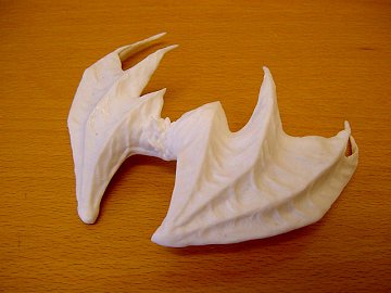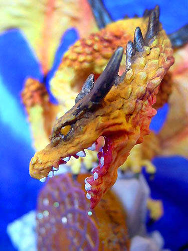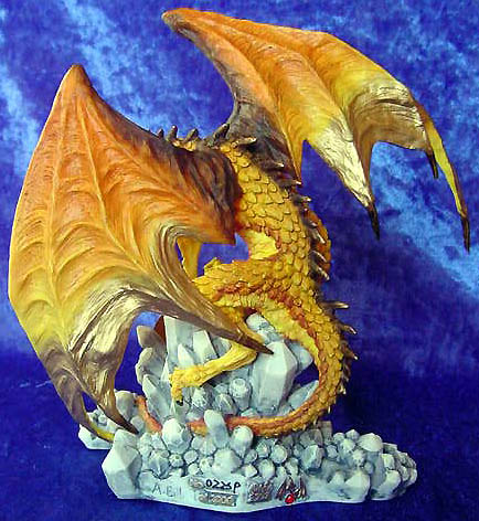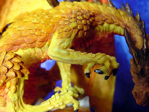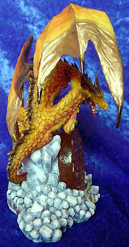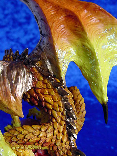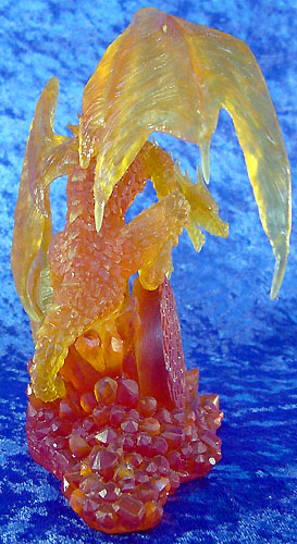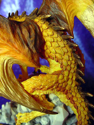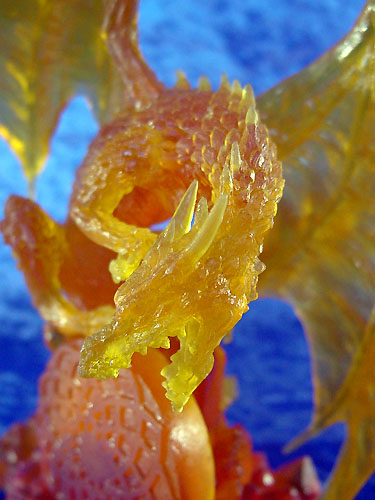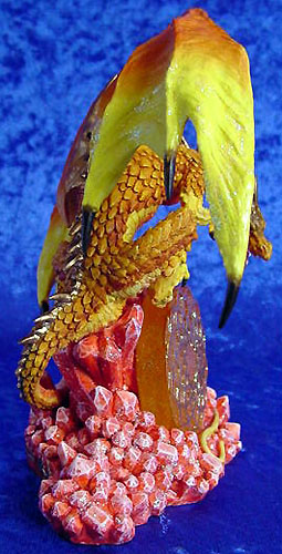 Note that the production piece has a more orange base and has the edge of the wings and back spines painted gold, whereas the tour piece is dark brown, also the bottom of the wings at the back and the base are covered with glitter on the production piece (something I don't like at all) but are painted gold on the tour piece