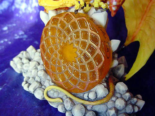 The Photo's below show the piece cast in translucent orange resin (Andrew Bill painted a few of these coloured resin pieces while on tour in 2002 in the U.S)