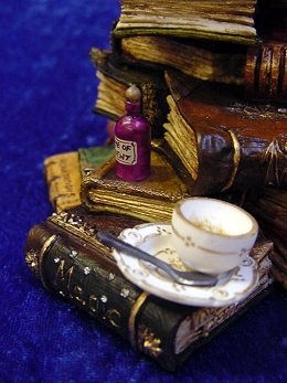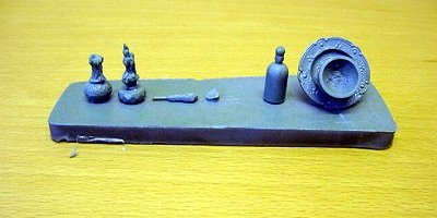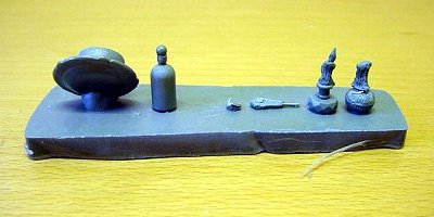 The 'Master' below is of the separate oddments - from left to right - Candle 1 (missing the flame), Candle 2, Candle 3 from open book (base only, candle missing), Spoon (broke & missing), Bottle and finaly Cup & Saucer