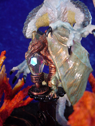 Below is the small dragon figure on a pedestal at the centre of the piece, note how the claw from the main dragon is actually part of this piece