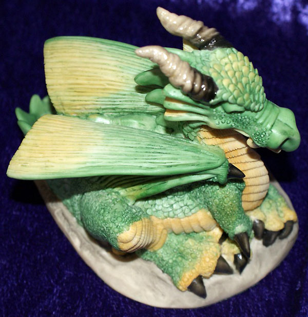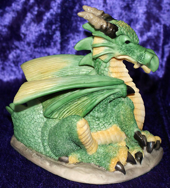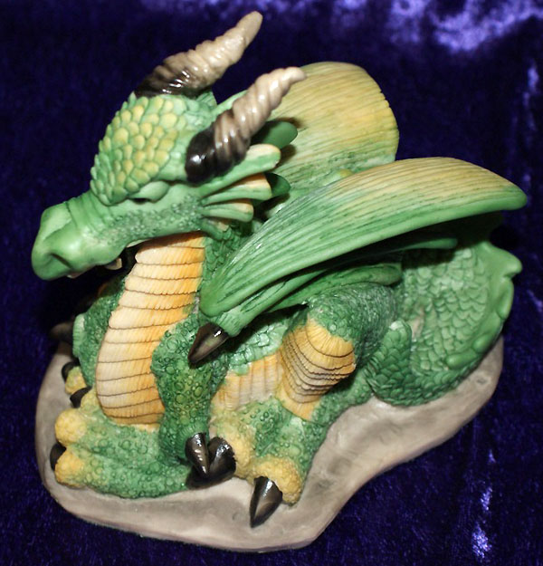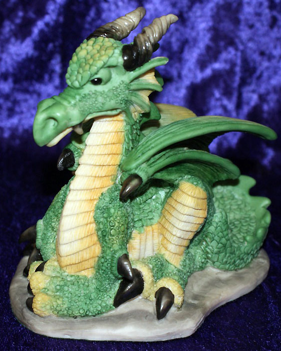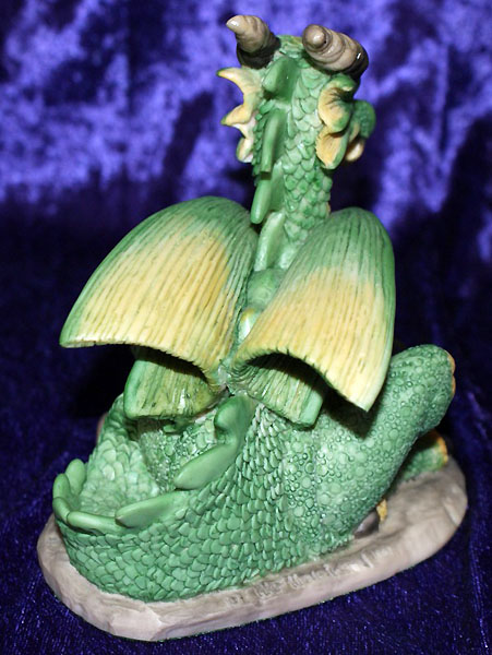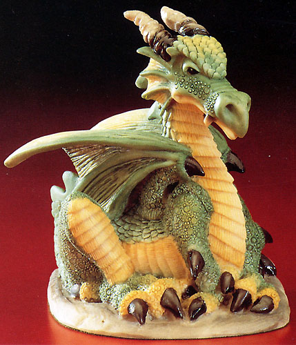 Albenon The Forest Dragon was one of two Club Redemption Pieces available for the 1992/93 club year. The other piece was Balador, and the two figures actually go together quite nicely. This serene little dragon sits contentedly with an expression that's very difficult to interpret. Is he happy or sad? Is he caught in deep thought, or merely planning his next meal? Hopefully, if the latter, it's not us he's thinking about!