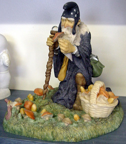 It is there that he gathers his herbs for healing and potions. On the sixth day of the new moon he harvests mistletoe with a golden sickle and gathers nightshade and foxglove as well. This eve finds him speaking herblore with Old Cowslip, a goodly elf much versed in the gathering and uses of mushrooms and toadstools. Some of these fungi will make a fine meal and others will have other valuable uses.