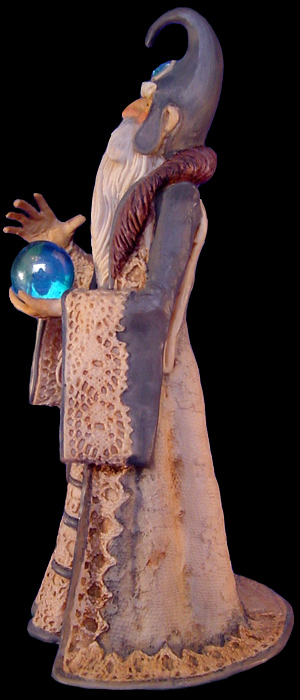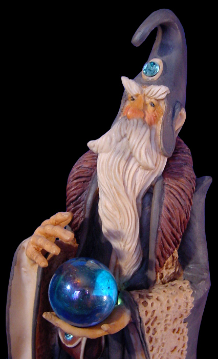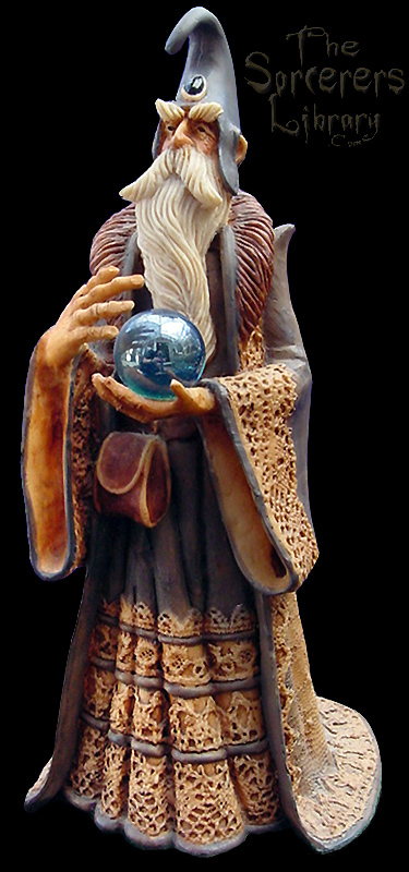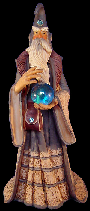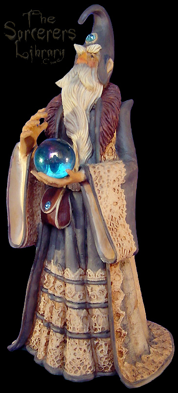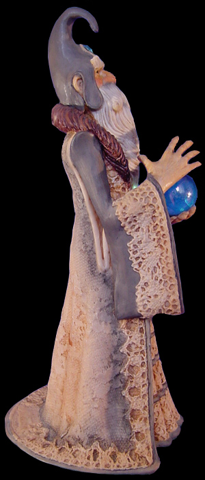There were two versions of Foreshadow the Seer released, the standard version and one with austrian crystal. (there's not much differece between them really other than a small crystal stuck on the wizards hat and an extra one added to the little bag on the later version) both versions are shown on this page |