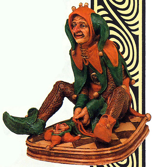 A natural fool, whose main qualification for his job was an accident of birth. The mental slowness and simple childlike qualities exemplify the true commonness of man. He also serves to show everyone around him that there is at least one poor soul duller and more stupid than they are.