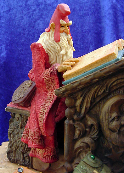 This stunning large prestige piece came on a black (enviromentally friendly) wooden plinth that had a turntable built in to it because the piece was too heavy to keep lifting, it was a great idea because there is so much to see on this piece and just viewing from one angle just isn't enough, you need to be able to rotate it to take in all the detail By special request you could order this piece with a walnut colour base instead of black. There was a companion piece to this called Keeper of the Ruins where the dragon was now fully grown and protecting the castle where the wizard was living. |