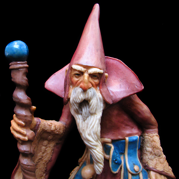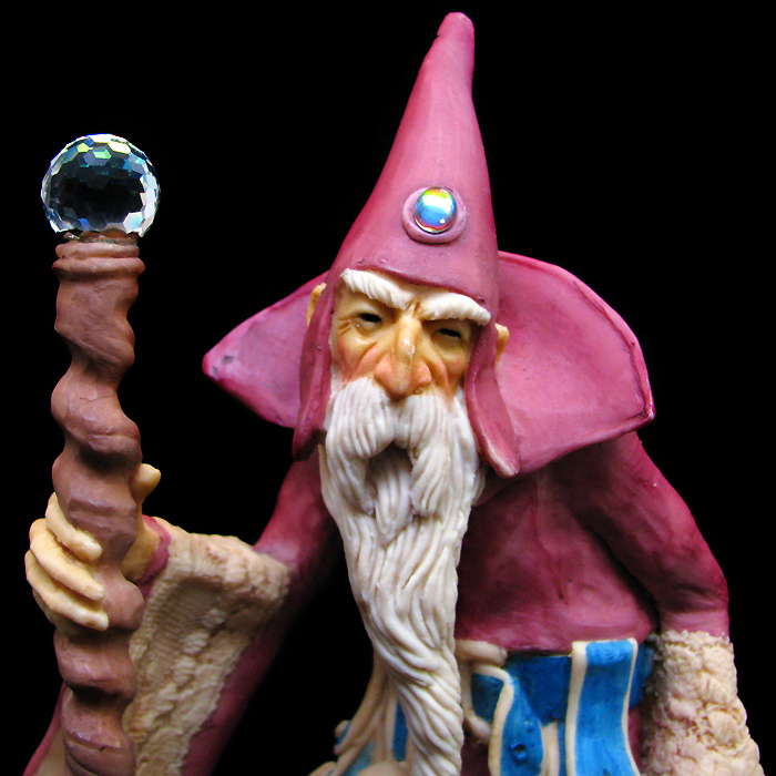 This had a crystal added to the front of his hat and one placed on the top of his staff