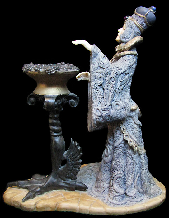 Noctiluca - Dark Enchantress and Sorceress of Dreams - surveys her bubbling cauldron with satisfaction. She has perfected a particularly potent brew which will cause even the most strong-willed of men to succumb to her spells. Her powerful magic causes her victims under enchantment to walk in their sleep, forsaking all else in their desire to do her bidding.