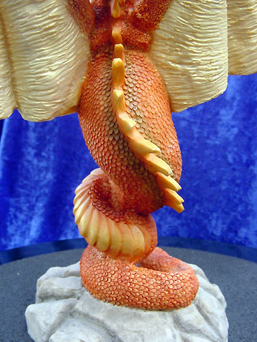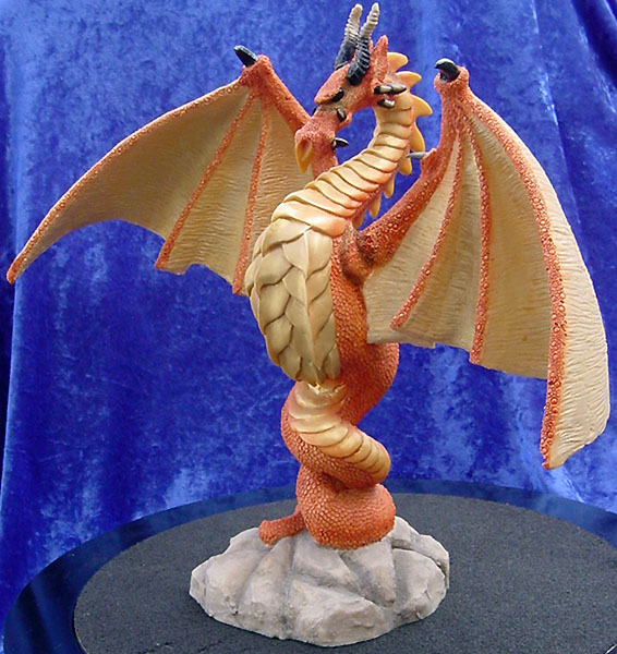 The great creature uncoils his snake body and strains for flight. The power generated by his beating wings can level a forest. The fire from his breath can incinerate and make molten the very rock from which he sprang. Dragons take many forms, this dragon takes it's name from the Anglo-Saxon word 'Wyverne' for Legless Dragon.