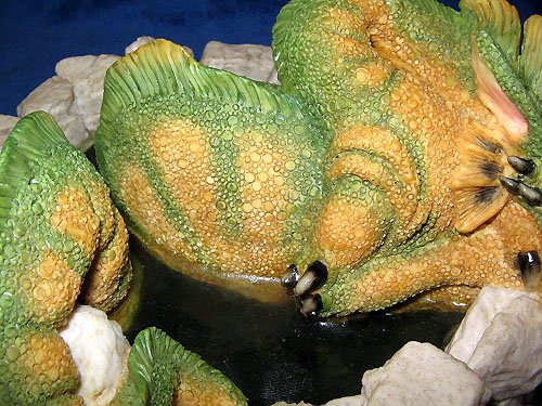 The worm refused to fight the young child and, when it revealed it's true identity, this proved to be an antidote that broke the spell. The Princess resumed her former shape and the evil Queen was turned into a toad. The toad Queen is still said to live in the castle...waiting...waiting...