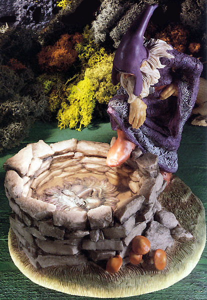 Galran peers deep into the well. It is now the home of his old teacher Gorom the Wise. Several years ago an evil witch cast a spell that left him trapped as a water spirit in the dank waters of the well. Galran visits him as oft he can and brings him news of the happenings in the world.