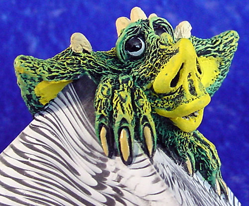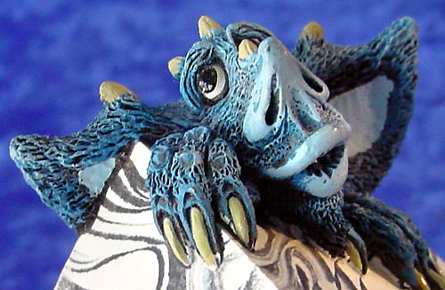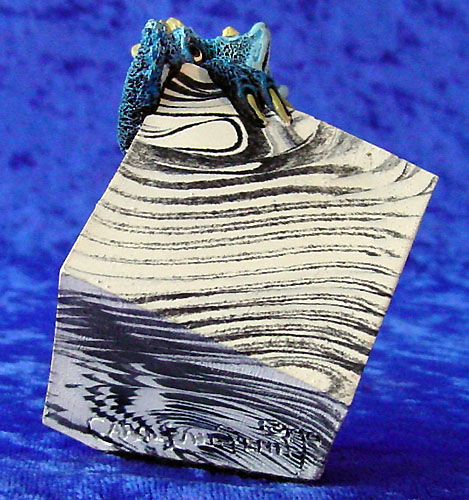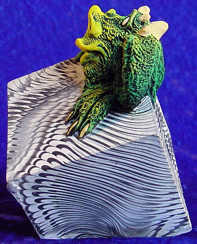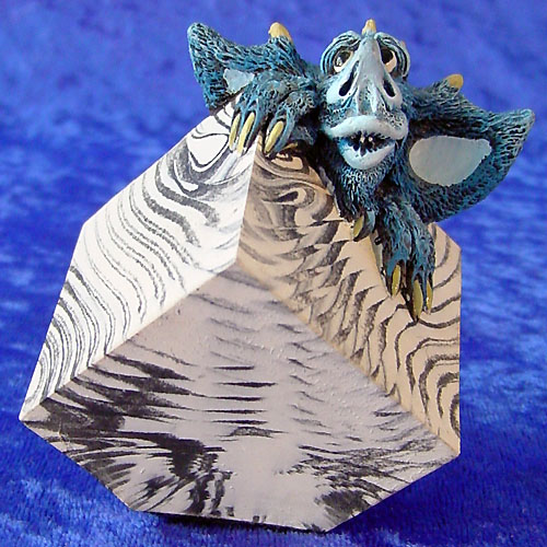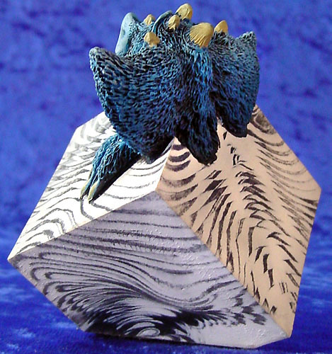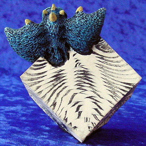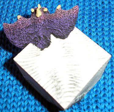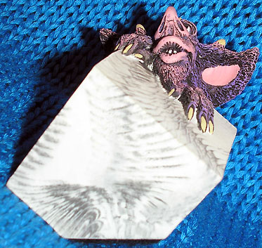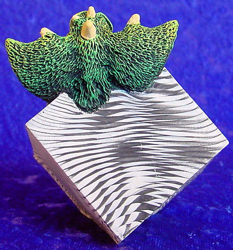 The photo below shows the tiny triangle that the piece has to balance on, but unlike the blue version above there is no felt on the base thus making it much more stable to display