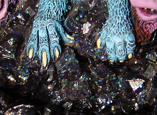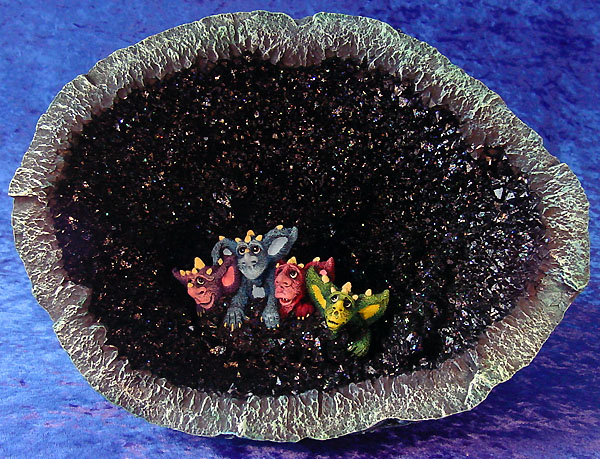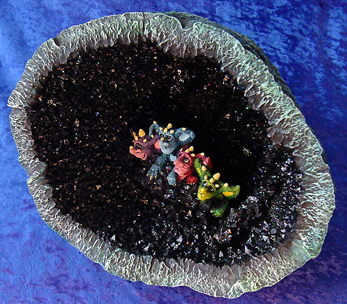 This is possibly one of the hardest Genesis pieces to find, not many were made and it's a very large piece, it is a large Geode (cast in resin, not a real one) with 4 Geomites sat inside looking out, one purple, one blue, one red & one green.