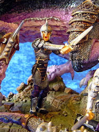 BATTLE AT DRAGONSKEEPThis piece is owned by Kevin & Sam Kinchen and was painted by Tina Sherratt.
