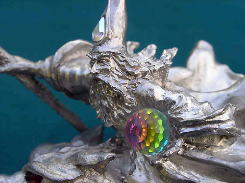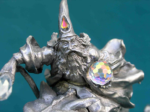 FA69b - With the wizard holding a short staff with a large crystal and with his hat bent back