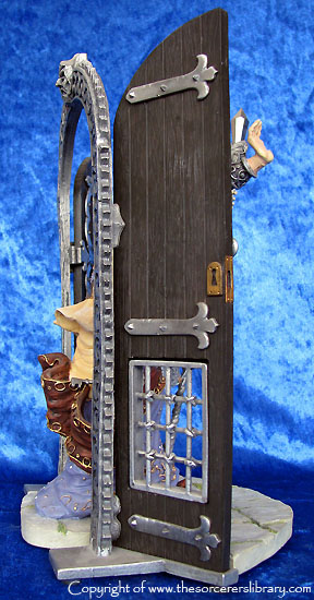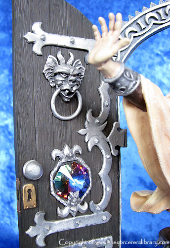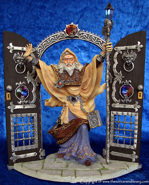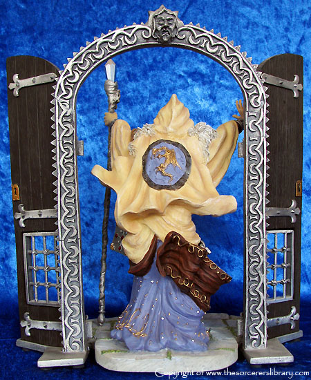 This piece come in 4 separate parts, the wizard, the archway and two doors |