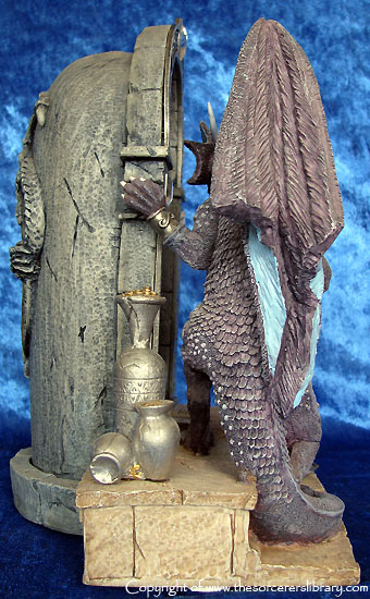 One of the many dragons within the fortress gazes through his window reflecting on the magical world beyond. This vigilant dragon is preparing to join his friends outside for his daily patrol of Spellbound.