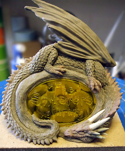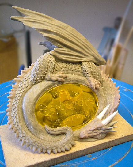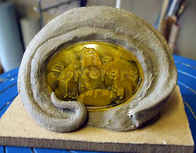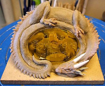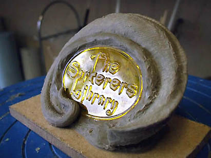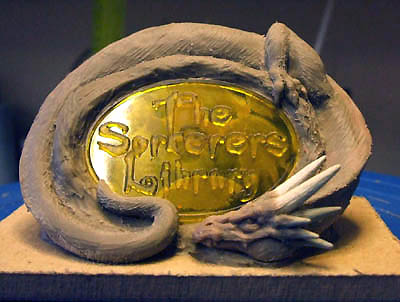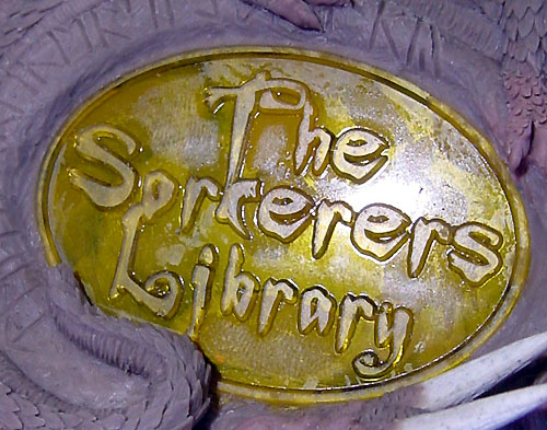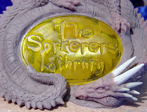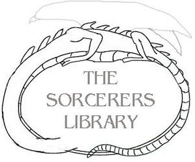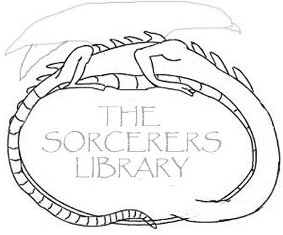 an oval with The Sorcerers Library wrote in the middle with a dragon curled