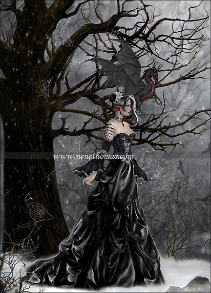 The artwork below entitled "Queen of Shadows" is what the sculpture is taken from, and it is copyright of Nene Thomas