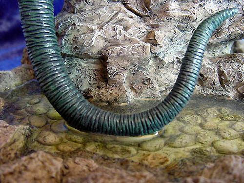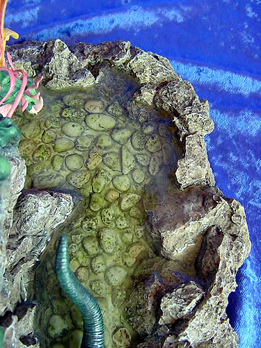 Late one afternoon, after travelling a great distance, Vansal returns to its quiet lair for a short respite from the never ending role as protector. Perched on a gigantic rock, Vansal lowers its massive head to a crystal clear pool, fed by a rushing waterfall that spills down a boulder strewn rock face. With surprising gentleness, its forked tongue caresses the surface of the water, drawing energy into its huge body.