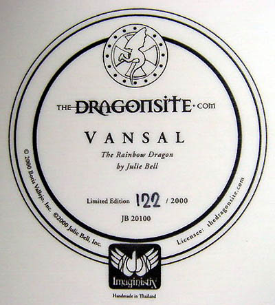 The picture shown below is a special auction Vansal piece from a Dragonsite show in 2002, it is painted in shades of blue and pink by Chris Hughes, It sold for £400 and is now owned by collectors Krissy and Adrian Donati
