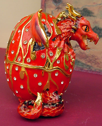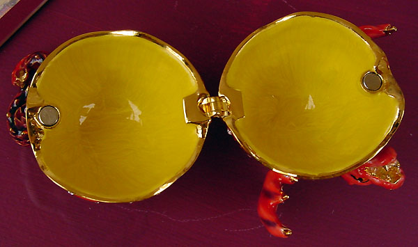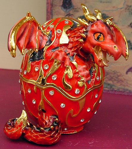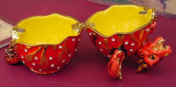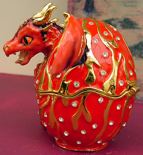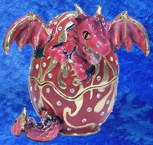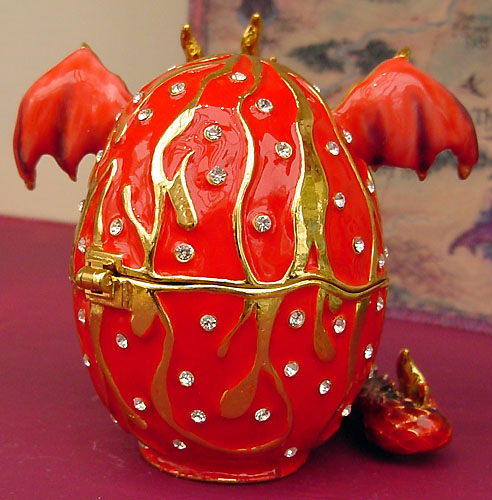 The eggs are little trinket boxes that open up, they are made from pewter with an enamel finish