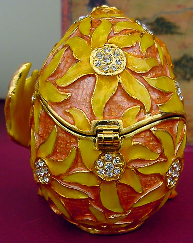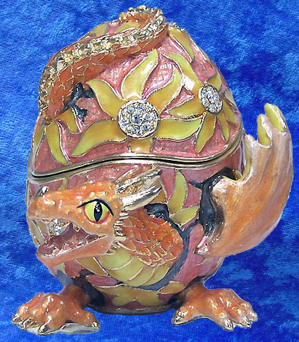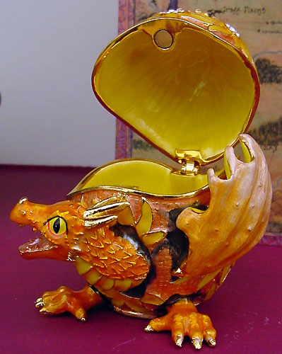 The eggs are little trinket boxes that open up, they are made from pewter with an enamel finish