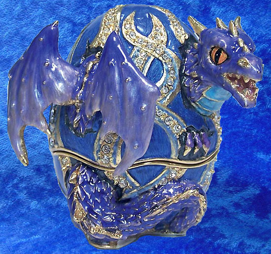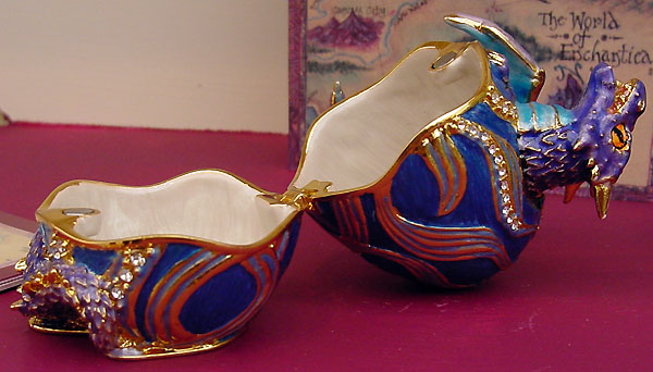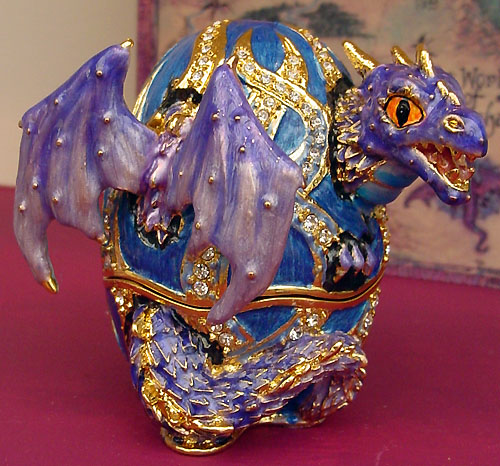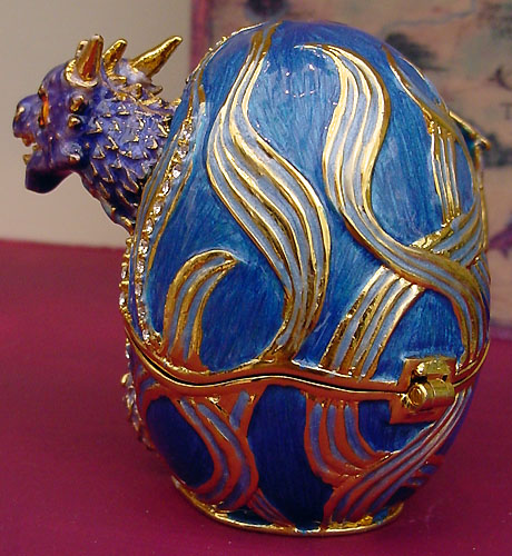 The eggs are little trinket boxes that open up, they are made from pewter with an enamel finish