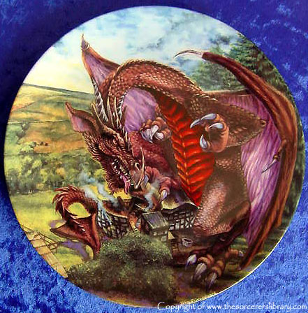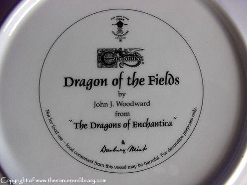The Plates are only available from Danbury Mint and are named 'The Dragons of Enchantica' They are Crown Staffordshire fine bone china Even though it isn't named after a piece of Enchantica is is obvious that this is 'Zadratus' |