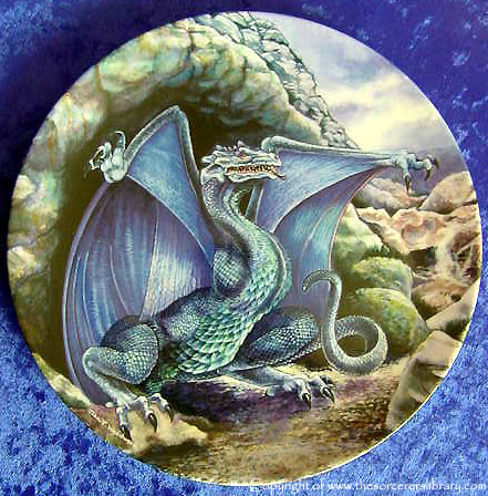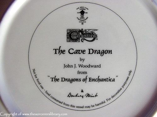 The Plates are only available from Danbury Mint and are named 'The Dragons of Enchantica' They are Crown Staffordshire fine bone china This is taken from the Enchantica piece 'Cave Dragon' |
