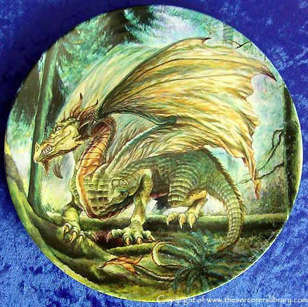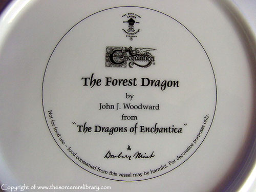 The Plates are only available from Danbury Mint and are named 'The Dragons of Enchantica' They are Crown Staffordshire fine bone china Even though it isn't named after a piece of Enchantica is is obvious that this is 'Cormorin' |