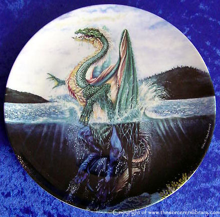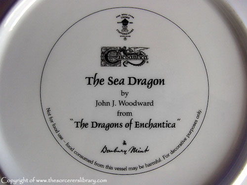 The Plates are only available from Danbury Mint and are named 'The Dragons of Enchantica' They are Crown Staffordshire fine bone china This is taken from the Enchantica piece 'Sea Dragon' |